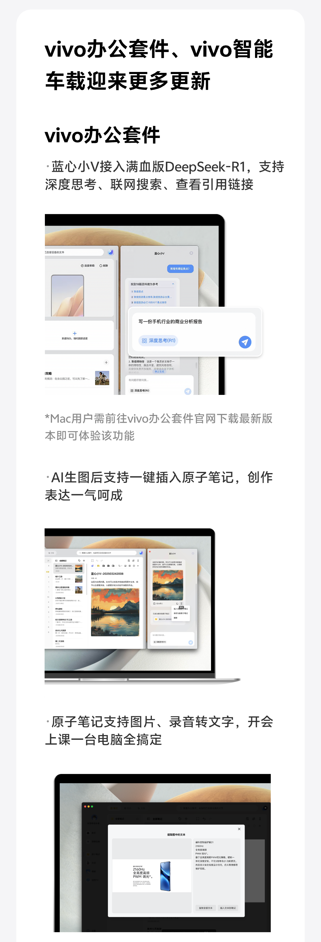 此外,vivo 办公套件、vivo 智能车载也迎来更新:
