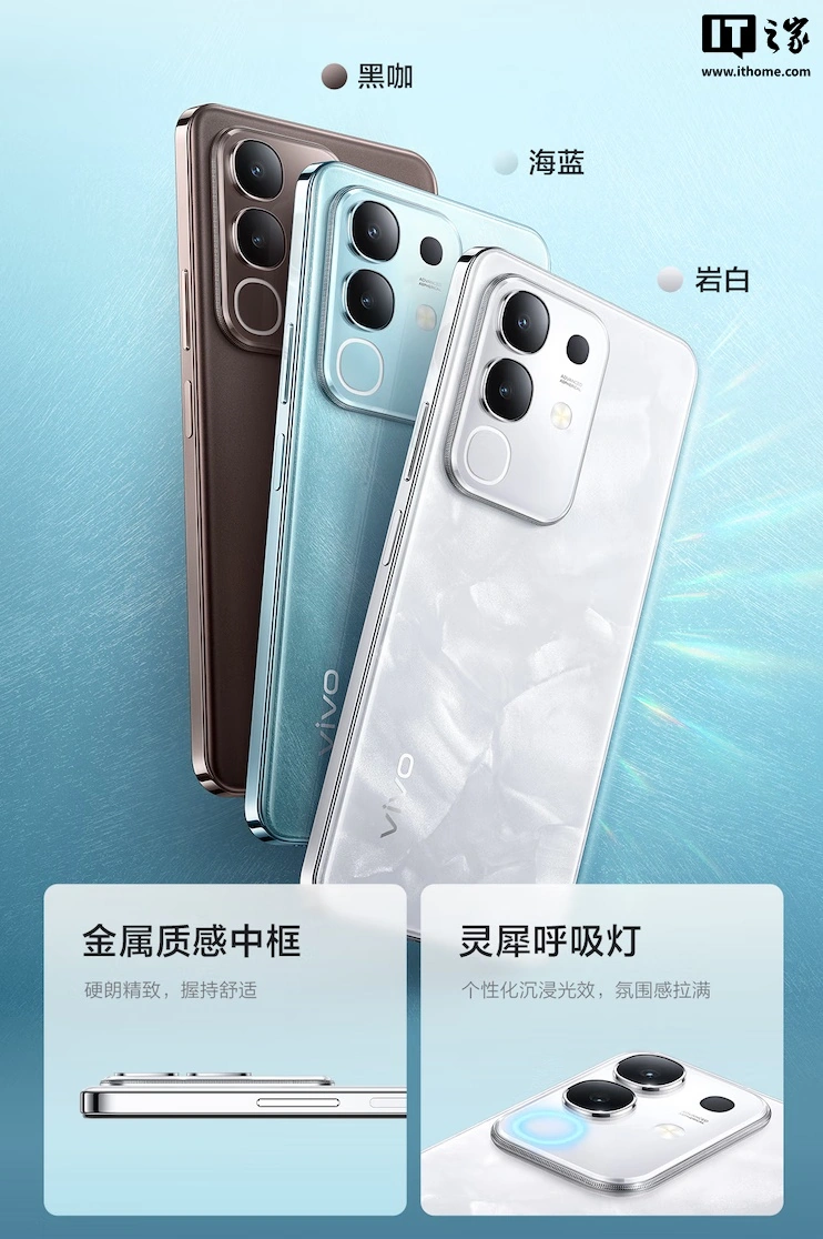 vivo Y300t 手机搭载天玑 7300 处理器(安兔兔跑分超 75 万),提供 8GB+128GB、8GB+256GB、12GB+256GB、12GB+512GB 四种规格版本,可选「岩白」「海蓝」和「黑咖」三款配色。