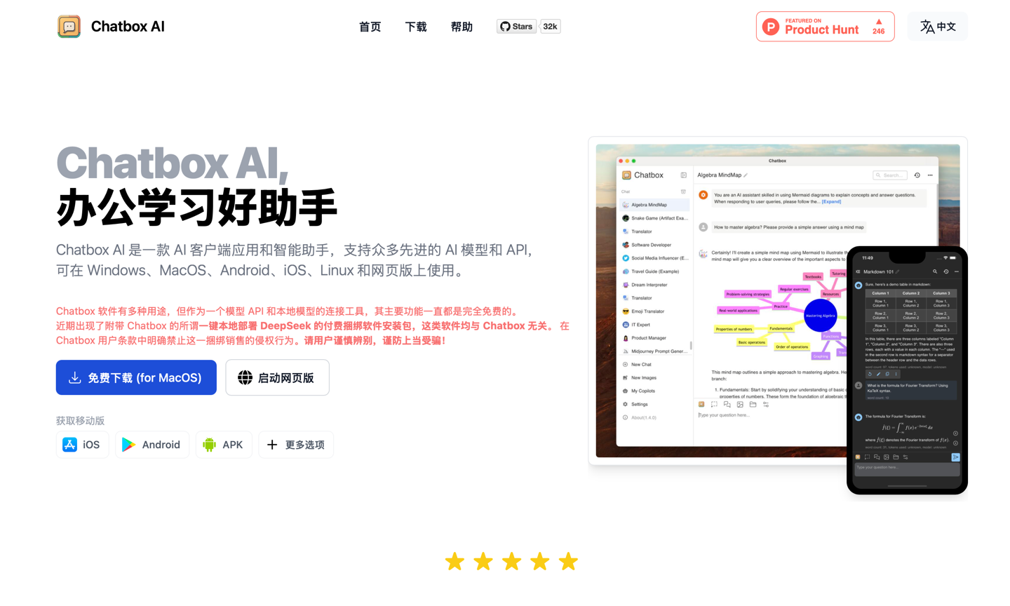 如果对浏览器的对话插件满意,就不用看这一部分了,如果使用的不是上述两个浏览器,抑或是对浏览器的交互方式不甚喜欢,那么也可以选择 ChatBox AI 作为交互入口。可以从官网自行下载。