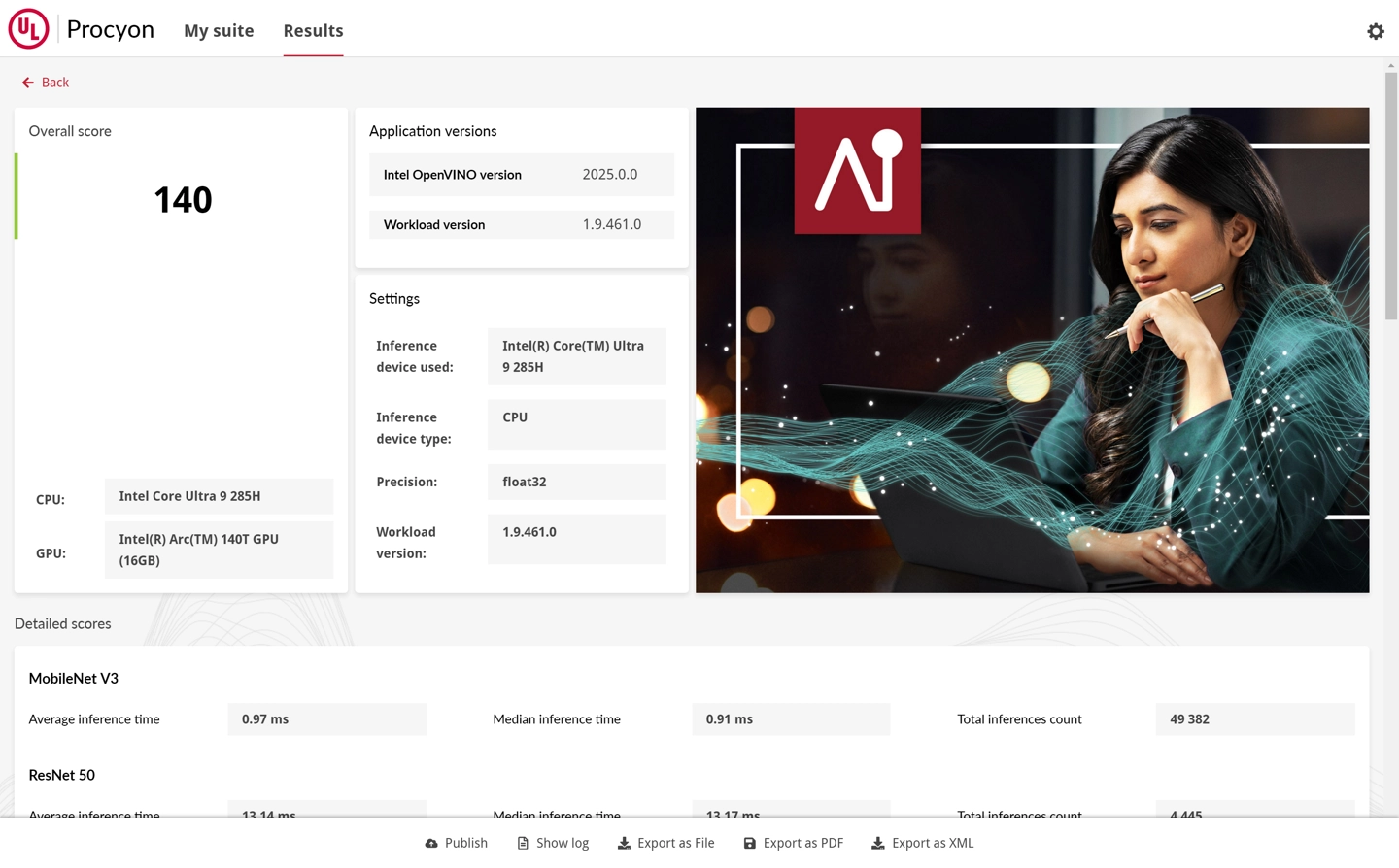 Procyon AI 是由 UL Solutions 推出的一款专业的基准测试软件,旨在评估计算机或设备在运行 AI 模型时的性能表现。它通过一系列标准化的测试,帮助用户快速了解硬件在处理 AI 任务时的效率和资源利用情况。