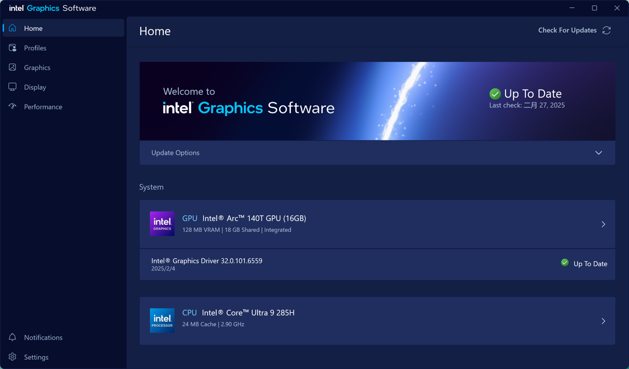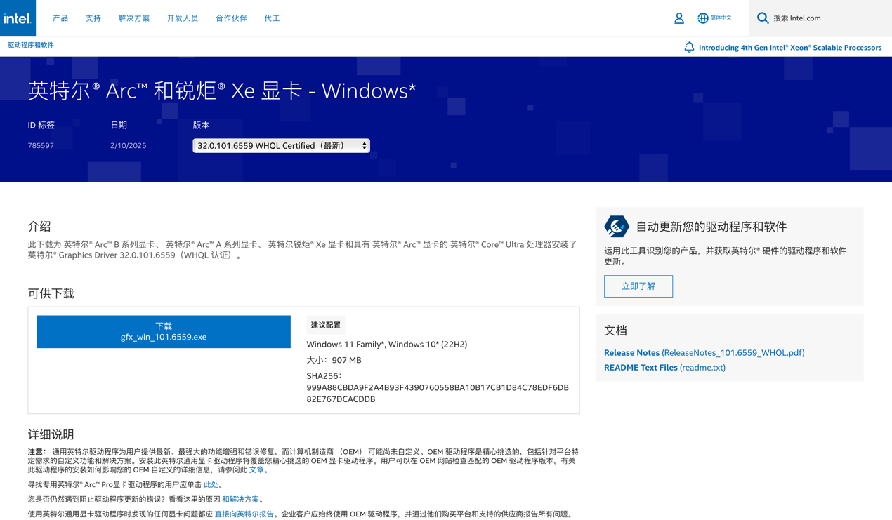 由于本地大模型的部署需要用到 Arc 核显的计算模块进行加速,因此在开始部署前,一定要确保显卡驱动为最新版本。直接去 intel 官网下载驱动管理软件就好,这里把链接给大家放在下边了,下载前要确认好对应的处理器版本和系统版本。