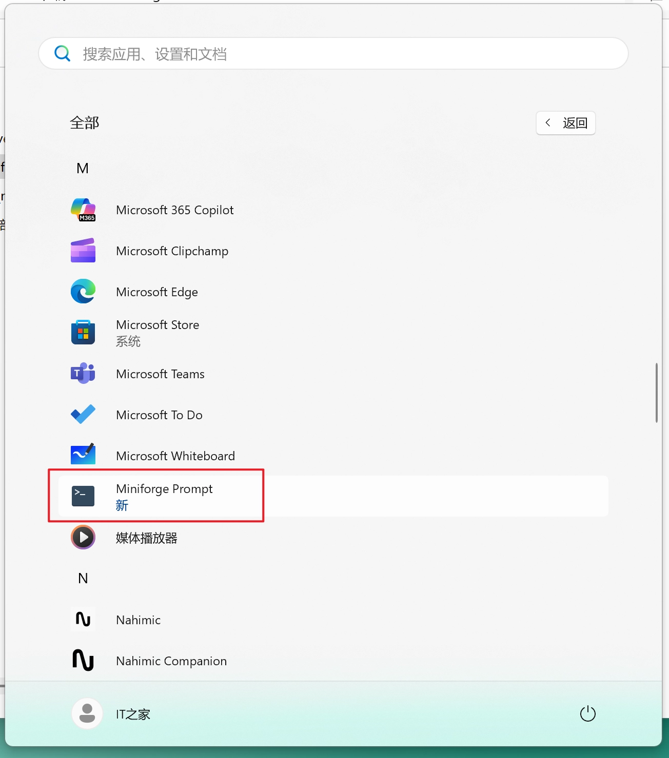 安装完成后,启动 Miniforge Prompt 命令行窗口。