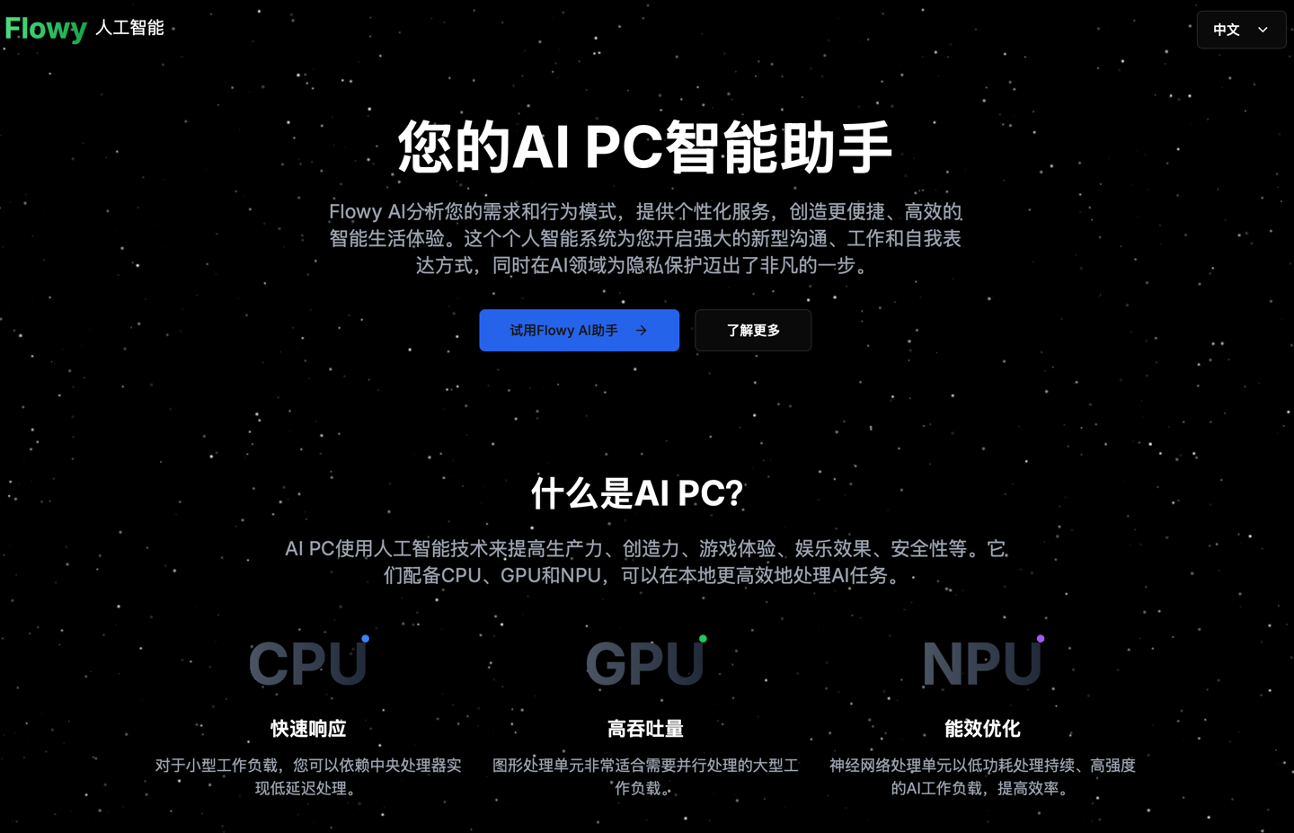 前一种方式如果大家觉得麻烦的话,还有一种“一站式”的全图形化部署方式就是 Flowy AIPC 助手,大家可以根据需求自行选择。首先从官网下载 Flowy AIPC 助手。