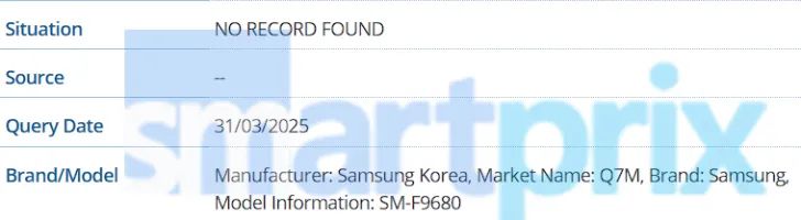 IT之家 4 月 1 日消息,科技媒体 smartprix 今天(4 月 1 日)发布博文,报道称基于 GSMA IMEI 数据库信息,三星三折叠设备内部型号确认为 Q7M,对应公开型号 SM-F968 系列,其中 SM-F968N 为韩国版,SM-F9680 为中国版。