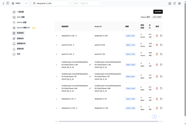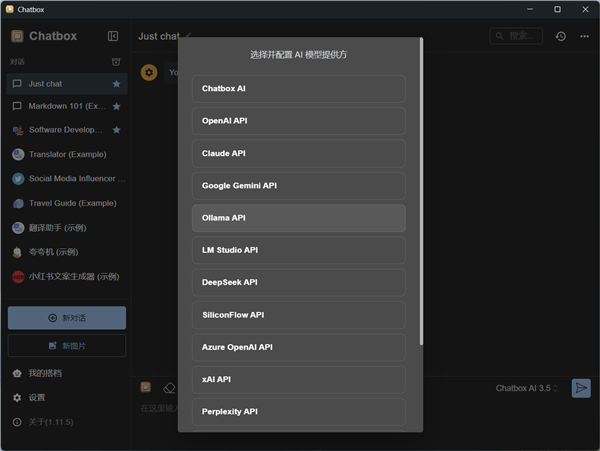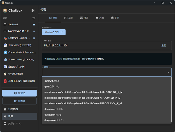 选择Ollama API之后,Chatbox AI就可以自动接管Ollama已经部署好的大模型。