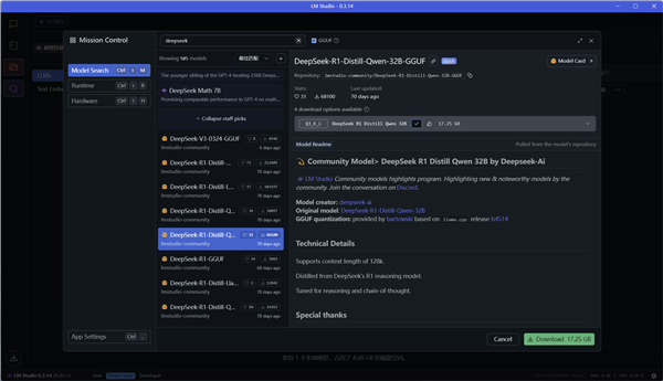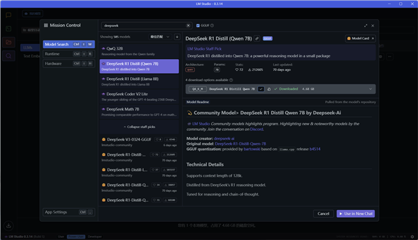 在LM Studio中,我们可以直接看到每个模型相关的参数和介绍,更方便选择合适的模型。