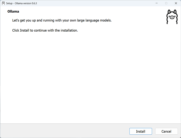 虽然Ollama的安装界面没有中文,但和普通安装程序并无区别,点击Install之后选择安装目录位置,即可完成安装。