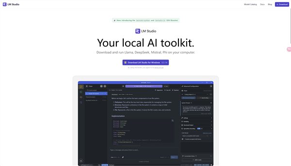 在LM Studio主页(https://lmstudio.ai/)上,我们可以直接下载Windows版本的安装程序。
