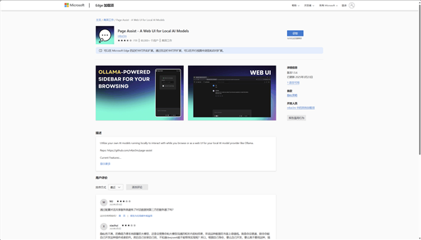 Page Assist(https://github.com/n4ze3m/page-assist)同样是一个开源免费的浏览器插件,可以在谷歌浏览器、微软EDGE浏览器和火狐浏览器的插件商店中找到。