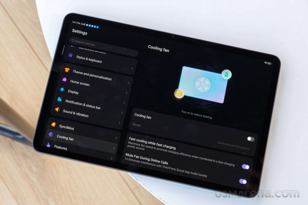 為了應對高效能運作時產生的熱量,Red Magic 為這款平板設計了 9 層散熱系統,包含 3D 熱管、循環輔助風道、散熱合金、石墨烯、銅箔、導熱凝膠和一個轉速高達 20,000 RPM 的內建風扇。讓人驚喜的是,風扇運作時幾乎聽不到聲音。