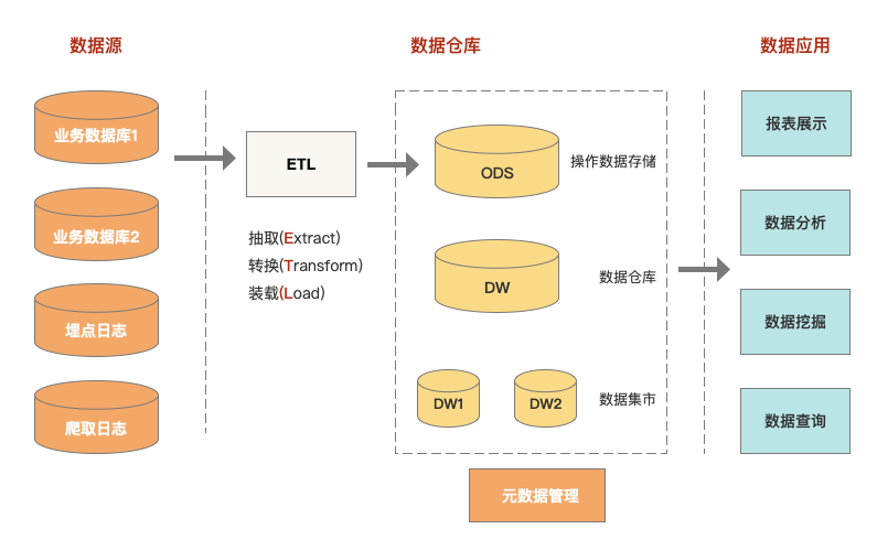 介绍数据仓库的时候,小枣君提到过,数据仓库会把众多数据源的数据汇集起来,进行 ETL(抽取 Extract、转换 Transform 和加载 Load)三板斧操作,然后存储,用于 BI、SQL 查询、数据挖掘、数据分析等目的。