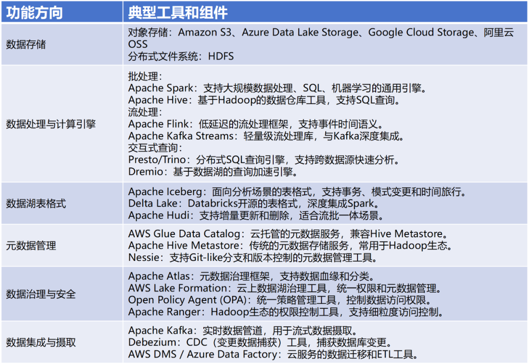 前面说过,数据湖是一个框架和技术体系。它由多个互相协作的组件和产品组成的。