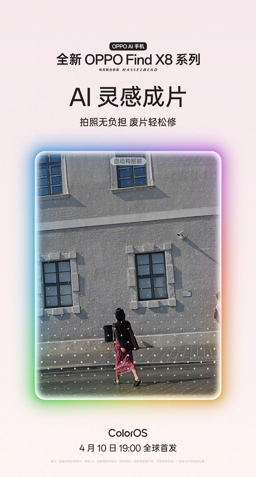 IT之家 4 月 7 日消息,OPPO 官方今日宣布,Find X8s 新机将带来全新 AI 灵感成片功能,支持自动构图、自动调色、智能推荐滤镜。