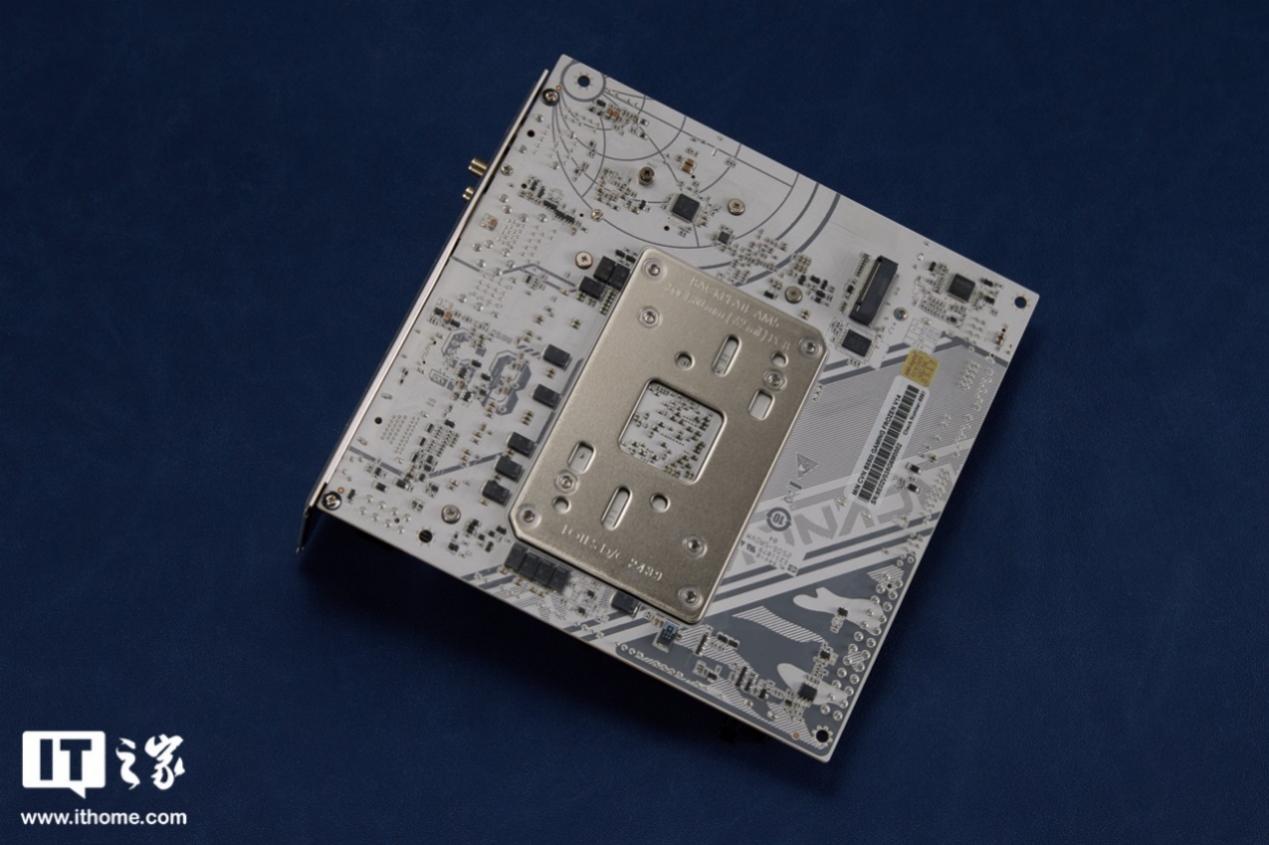 打开 CPU 槽位固定盖,可以看到主板依旧为 AM5 平台,不仅兼容最新的锐龙 9000 系列处理器,也可兼容锐龙 7000 系列,CPU 选择非常丰富。