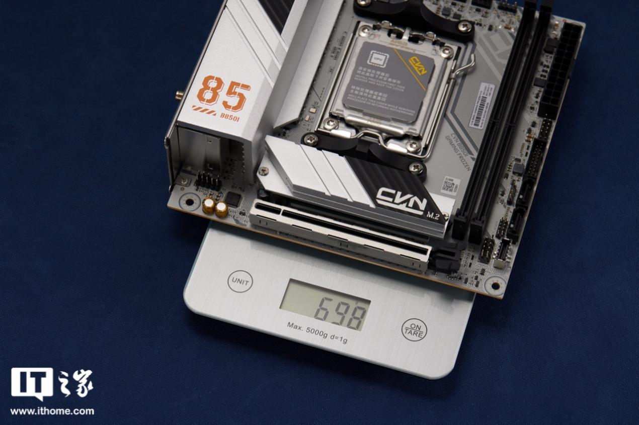 尺寸方面,既然是 Mini 小板身材自然非常小巧,IT之家实测长和宽都是 167mm。单主板上秤重量不到 700g,相当轻盈。