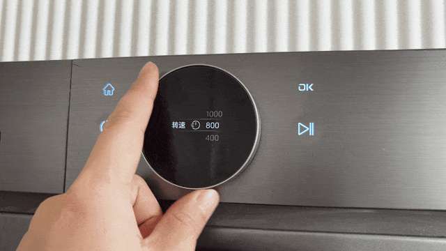 在交互层面,TCL AI 超级筒洗烘一体机 T7R Pro 采用了可视化触控屏和旋钮,旋钮内部是一块圆形的显示彩屏,用于显示洗衣模式、时间、状态等信息。