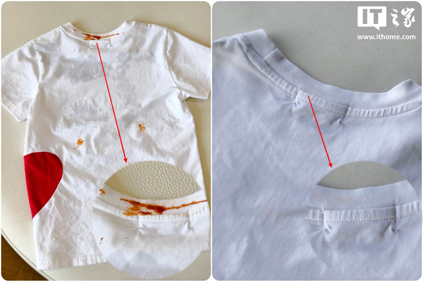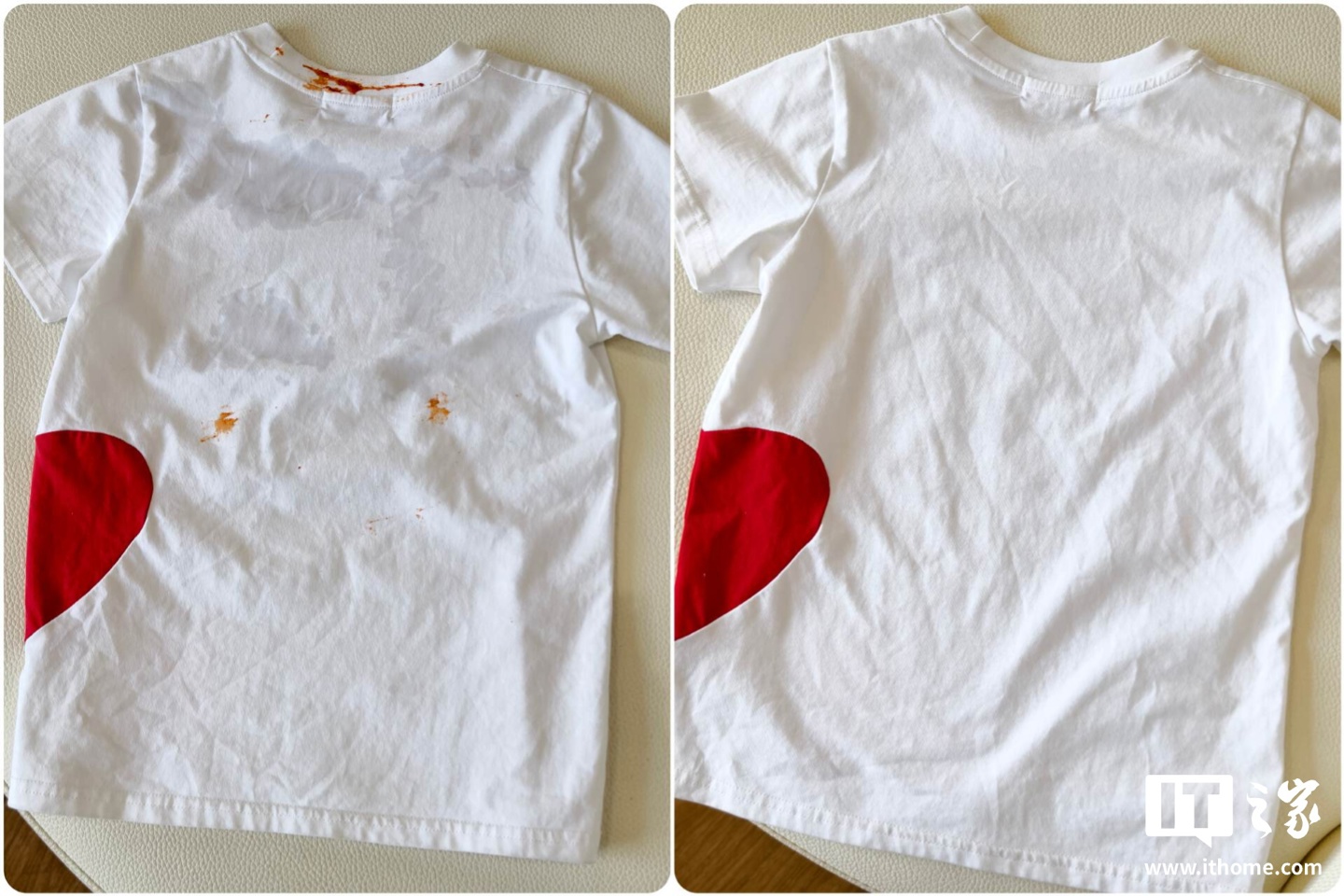 胸口处的辣椒酱污渍,则已经完全消失不见,清洁效果令人惊喜。