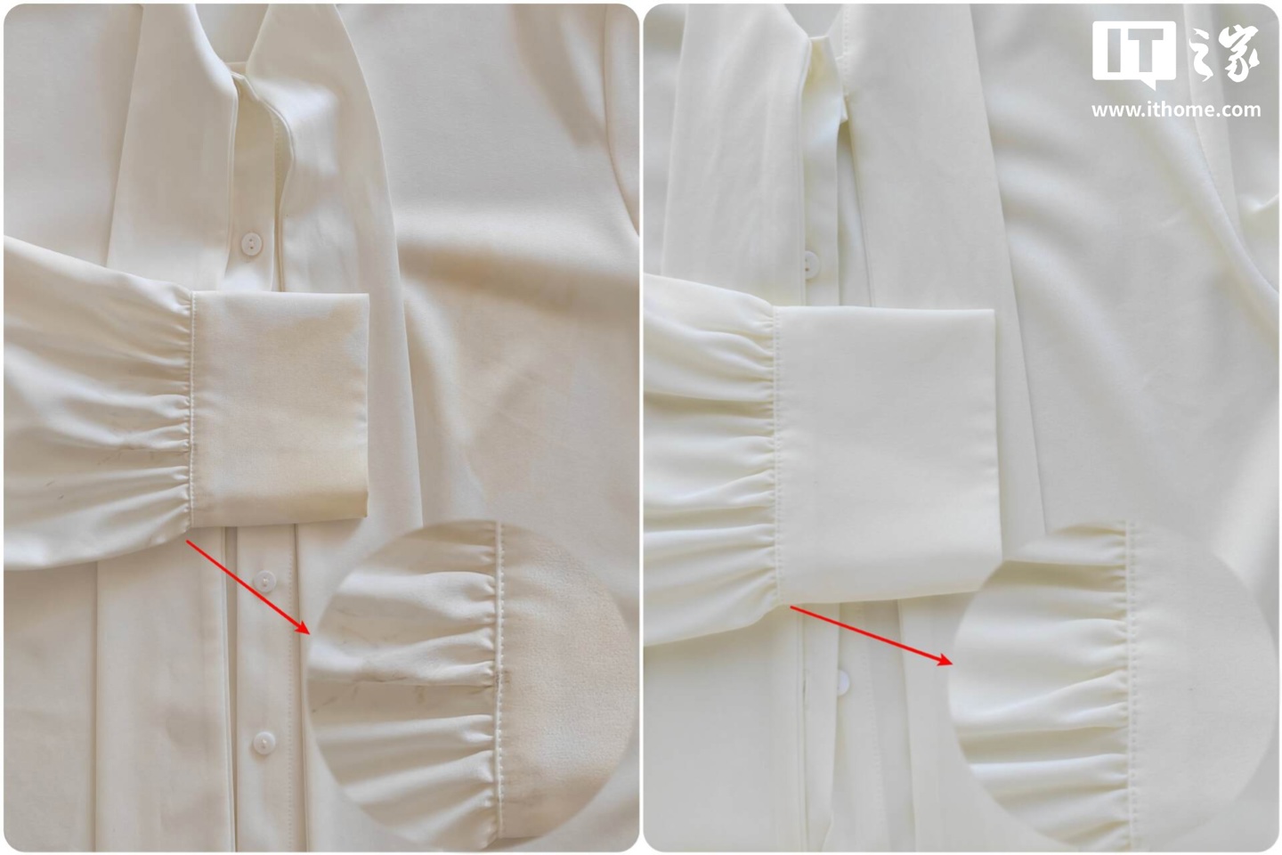 局部放大,袖口处的顽固污渍也已经消失不见。