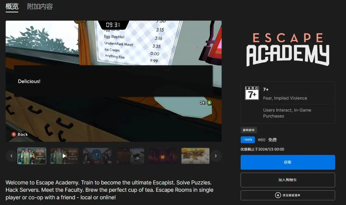 作为一款免费领取的游戏,《逃脱学院》无疑是近期Epic游戏商店的一大福利。玩家们不妨前往Epic游戏商店,尝试这款充满挑战和趣味的解谜游戏,享受免费领取的快乐。