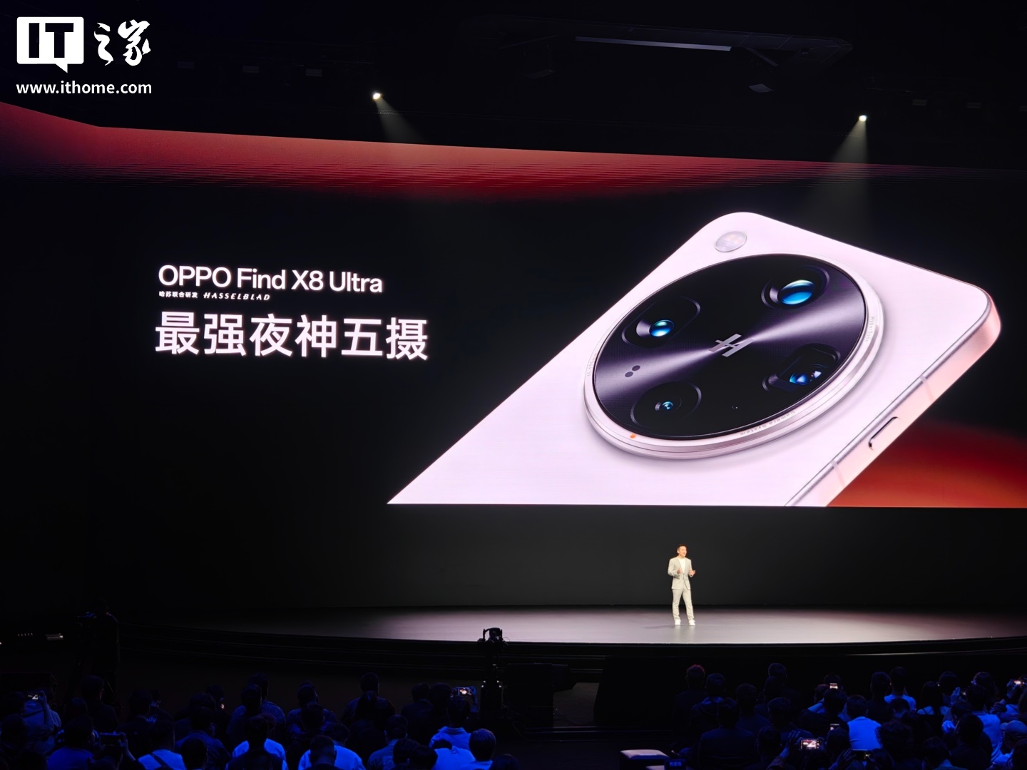 IT之家 4 月 10 日消息,在正在进行的 OPPO 全新 Find X8 系列暨智能生态旗舰新品发布会上,OPPO 首席产品官刘作虎登场介绍了 Find X8 Ultra 手机的全新夜神五摄影像系统。