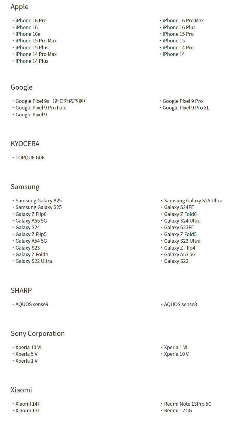 | Galaxy Z Flip5 | Galaxy A55、A54、A53、A35、A34、A33、A15、A14、A13 |