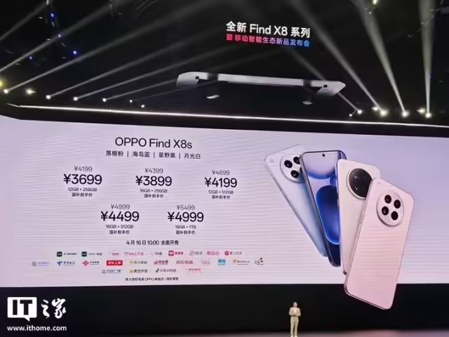 OPPO 昨晚(4 月 10 日)在西安召开发布会,发布了三款 Find X8 系列手机新品,及手表、平板等多款 IoT 新品。