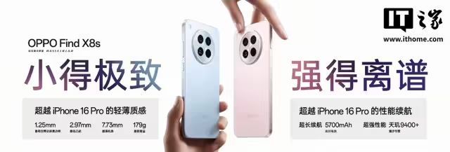 除了影像旗舰 Find X8 Ultra,OPPO 还带来了升级天玑 9400+ 的 Find X8s 与 X8s+ 两款手机。