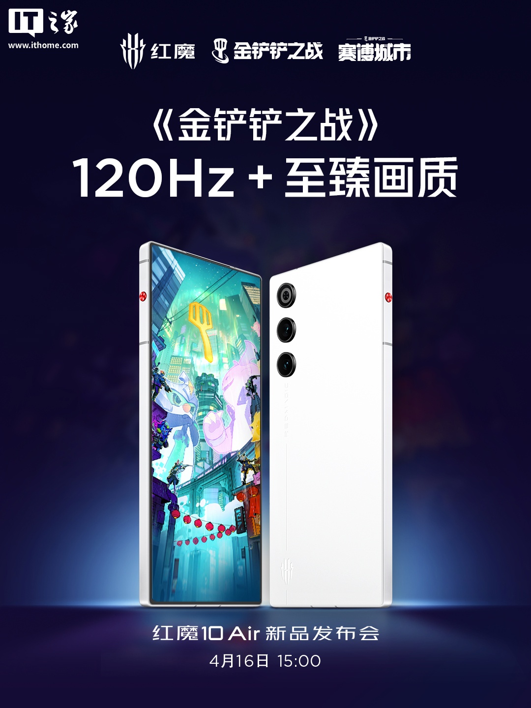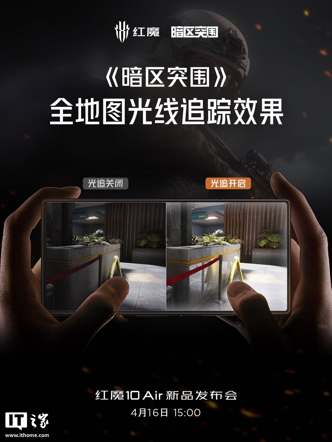红魔 10 Air 手机预热:适配《暗区突围》全地图光线追踪、《金铲铲之战》120Hz + 至臻画质
