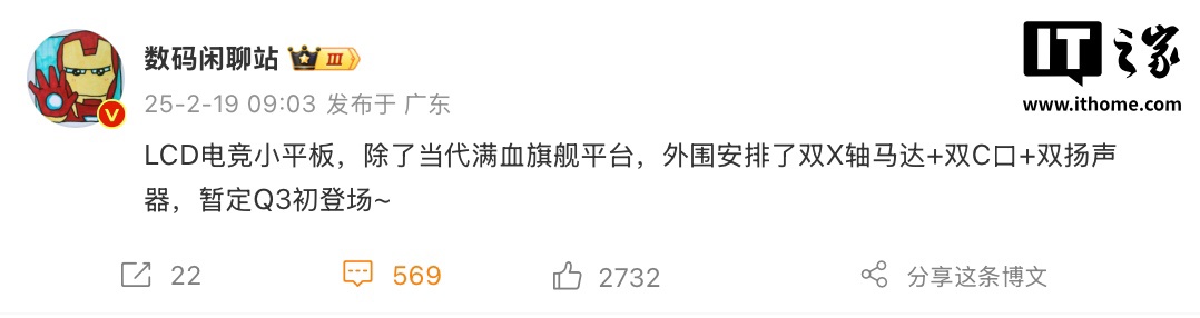 此前相应博主还透露该机使用 8.8 英寸 LCD 面板,配备双 X 轴马达 + 双 USB-C 接口 + 双扬声器,内置 7500mAh 电池。