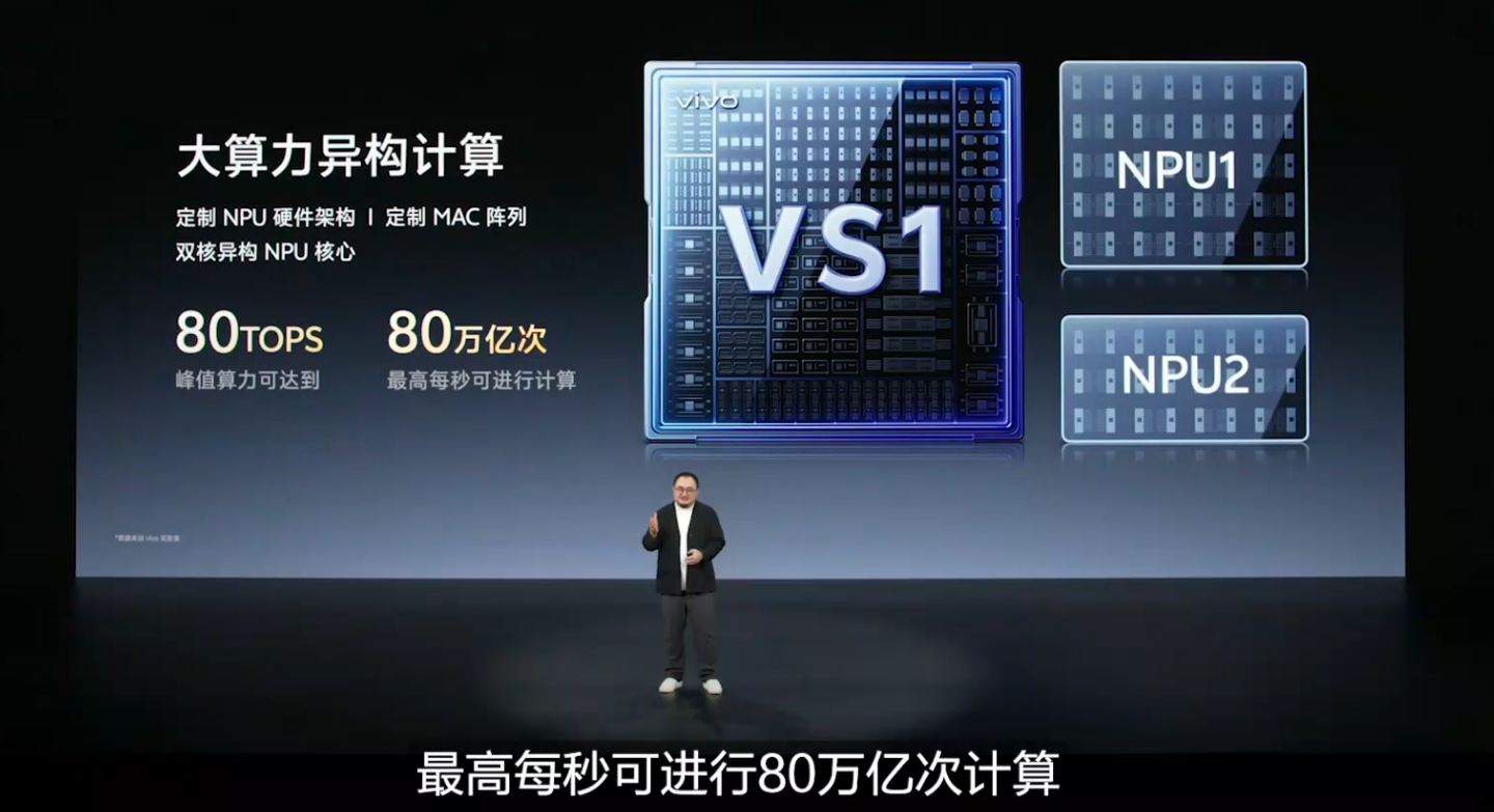 据 vivo 官方介绍,vivo 首款前处理 AI ISP 影像芯片 VS1 拥有最高 80TOPS 算力,采用定制 NPU 硬件架构,搭载双核异构 NPU 核心。