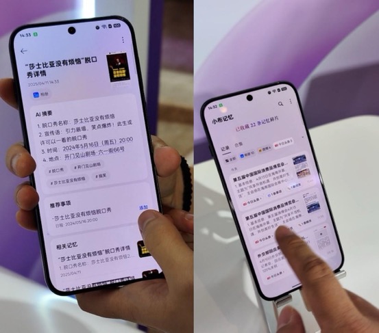 比如小编在现场体验了 OPPO 展出的基于天玑 9400 + 芯片的 Find X8s 手机,在端云协同 AI 能力的加持下可以实现 AI 一键闪记功能,通过左侧快捷键一键唤起,将当前 App 中的文章、热贴快速收录,还能分类整理,而且对于收录的内容,可以直接询问小布 AI 助手进行查询、提炼和总结。