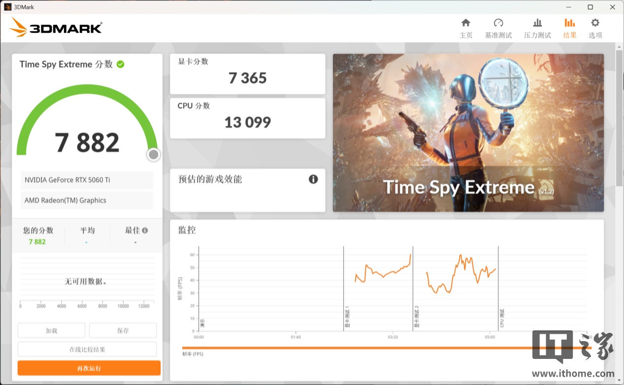 RTX 5060 Ti 的显卡分数为 7365 分;