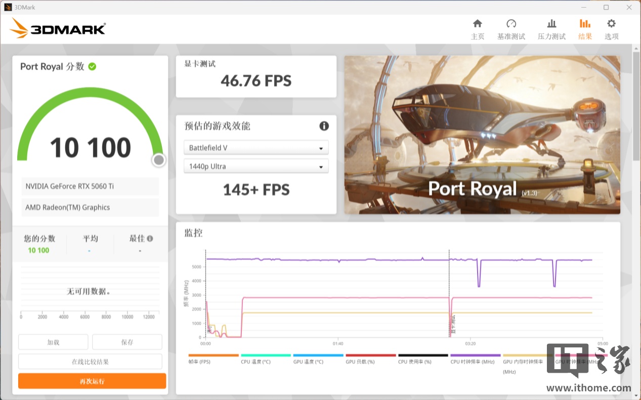 RTX 5060 Ti 的显卡分数为 10100 分;