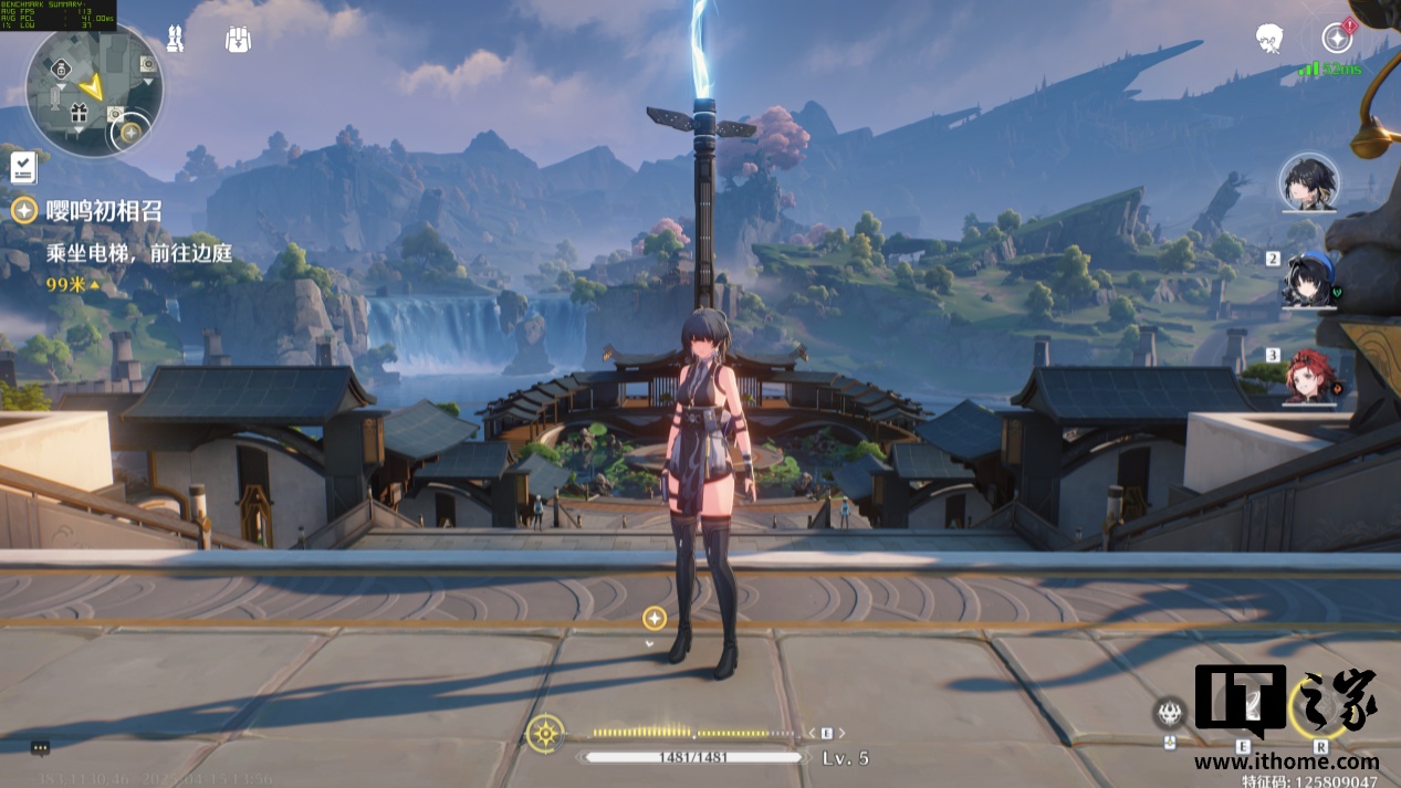 鸣潮作为一款开放世界游戏,默认锁 120Hz,所以 1080P 和 2K 分辨率下即使开启光追,压力也不算大,1080P 分辨率 + 窗口模式下跑图能到 100 帧以上,所以我们直接上强调切换到 4K 分辨率 + 全屏模式,在最高画质和光追选项加持下,游戏的平均帧数来到了 44 帧,延迟高达 99ms,1% Low 帧更是只有 35 帧,游戏体验比较难受。