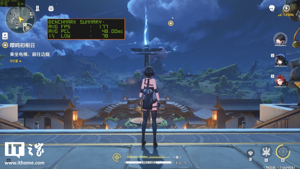 随后我们在 NVIDIA App 中依次开启 3x 和 4x 多帧生成选项后复测,游戏平均帧数分别提升到了 150 帧和 177 帧,1% Low 帧增加到 72 帧和 78 帧,游戏平均延迟也是成 4ms 的线性增长。鸣潮刚开服时的优化不尽人意,经过近一年的更新迭代后,目前即使在 4K 分辨率下,使用技嘉 AORUS GEFORCE RTX 5060 Ti ELITE 16G 显卡也能拥有出色的游戏体验了。