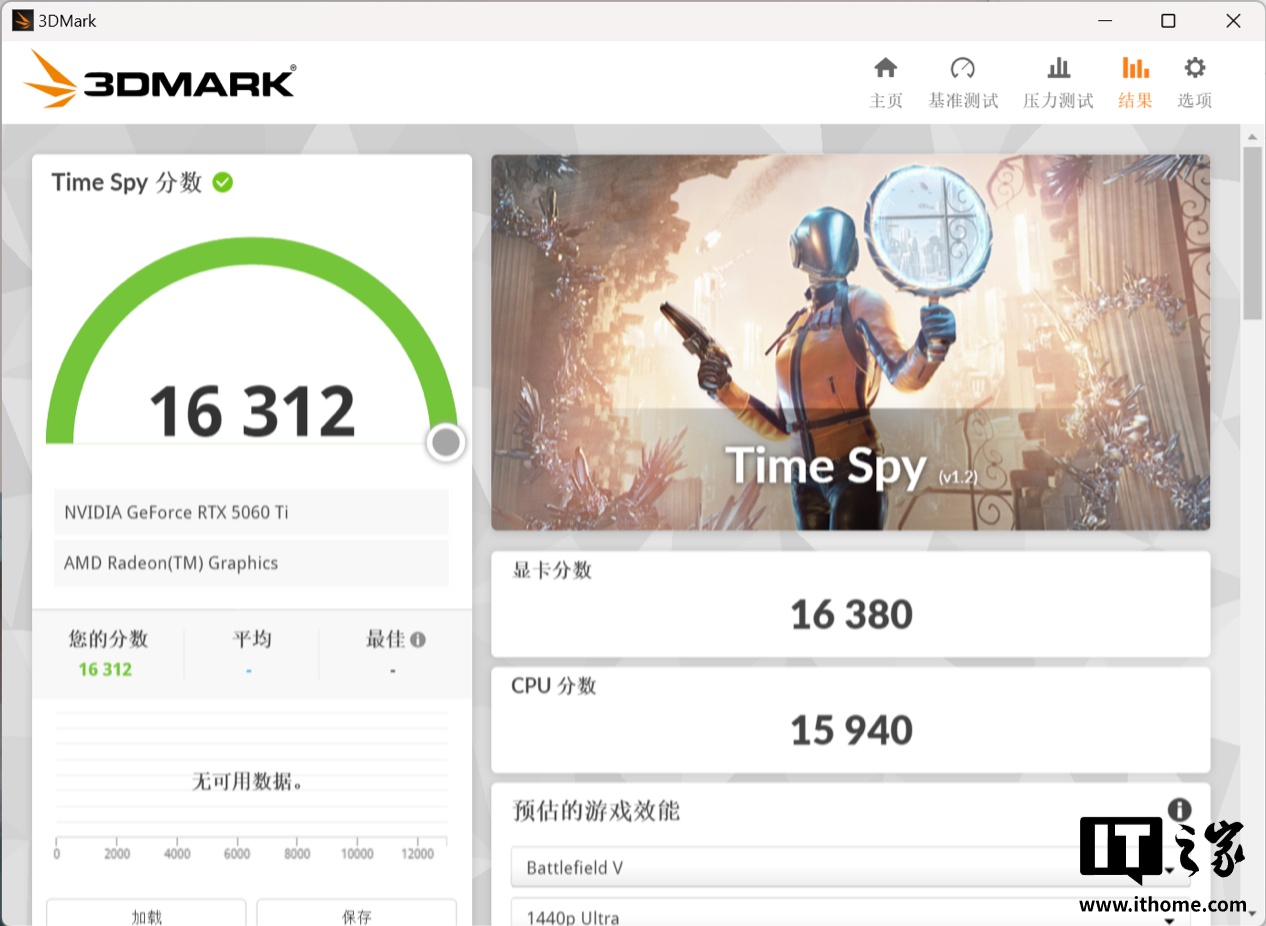 • RTX 5060 Ti 的显卡分数为 16380 分;