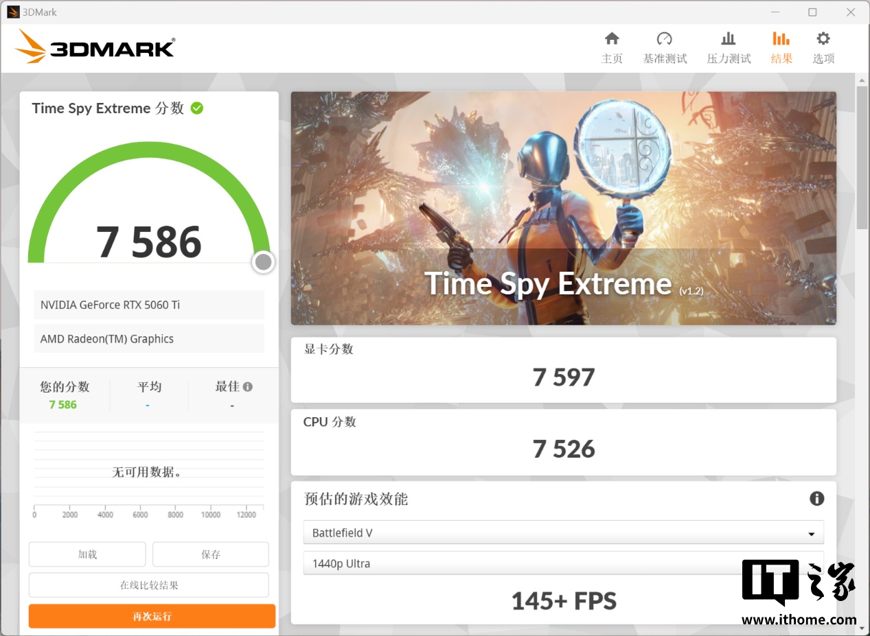 • RTX 5060 Ti 的显卡分数为 7597 分;