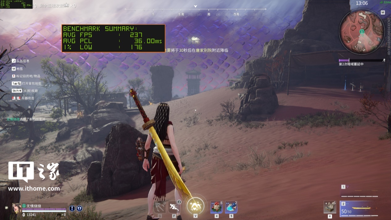 随后,当我们在设置菜单中开启 2x、3x 和 4x 多帧生成选项并打开 DLSS 质量档后,游戏平均帧数分别提升到 188 帧、222 帧、237 帧,而游戏平均延迟方面分别为 22ms、29ms 和 36ms。开启多帧生成和 DLSS 后,游戏的延迟肯定会有一定提升,不过在 1080P 分辨率,2X 帧生成的 22ms 和 3x 帧生成的 29ms 都没超过 30ms,对操作的影响不大,延迟在可接受范围内。