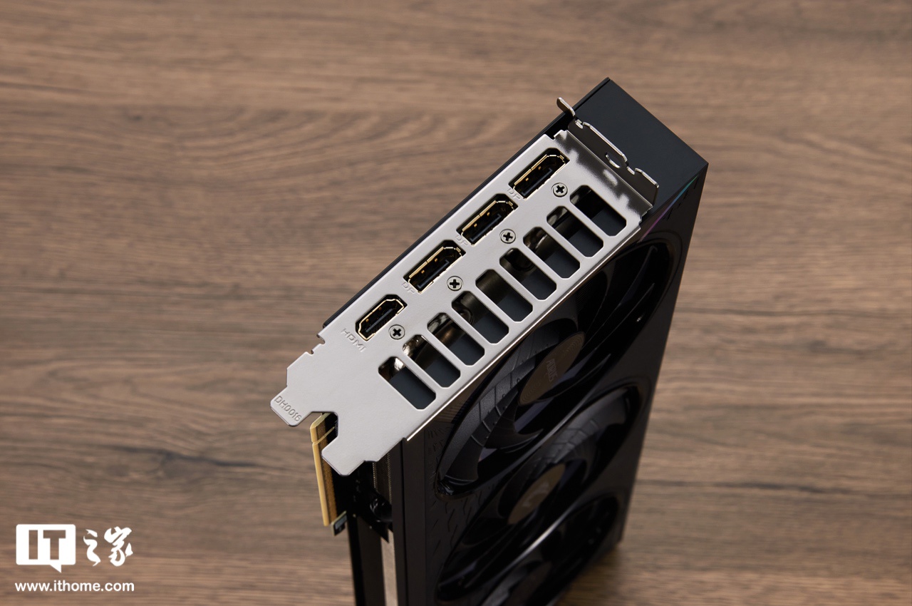 I/O 接口方面,技嘉 AORUS GEFORCE RTX 5060 Ti ELITE 16G 显卡的接口侧板基本与卡身齐平,并提供了 3 个 DP2.1 接口和 1 个 HDMI2.1 接口。
