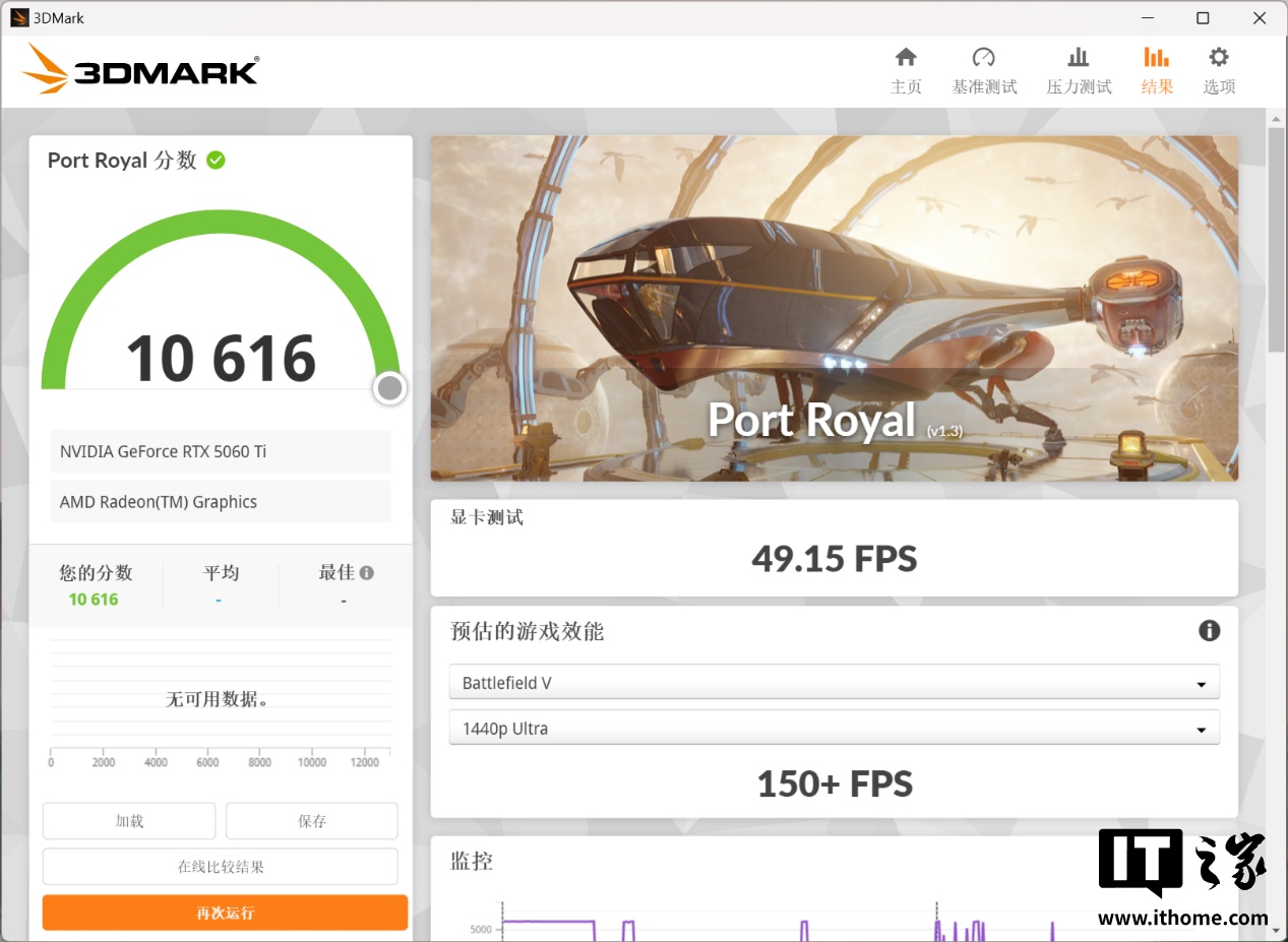 • RTX 5060 Ti 的显卡分数为 10616 分;