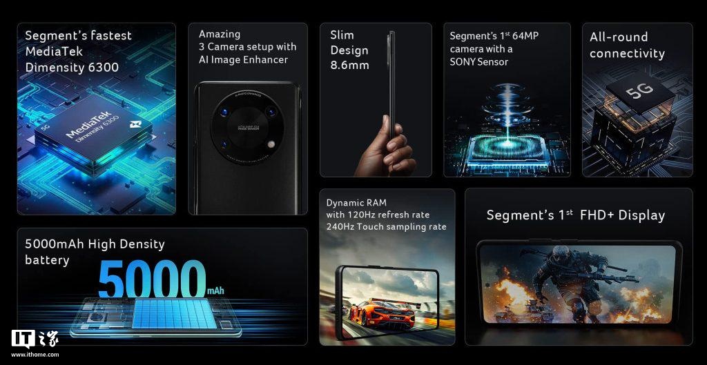 5000mAh 容量电池,33W 充电功率,金属后盖,支持 IP64 防尘防水。