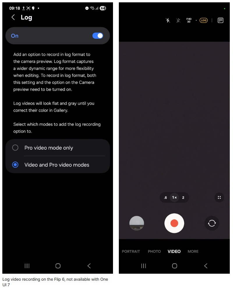 该媒体实测 One UI 8 早期版本,认为是 One UI 7 的完善版本,并未带来全新突破,主要向 Galaxy Z Flip6 等机型下放 Now Brief、Log 视频录制(Log Video Recording)等功能。