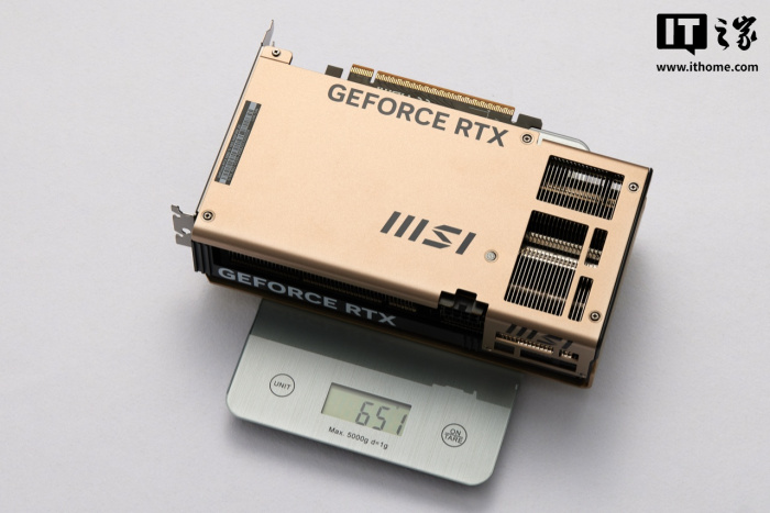 尺寸方面,微星 GeForceRTX 5060 Ti 16G INSPIRE 2X 作为一张双风扇显卡,体积极小,长度仅有三风扇显卡的 2/3。官方三围数据分别是 204*117*50mm(含挡板),IT之家进行了实际测量,供大家参考,上秤重量则是 651g。