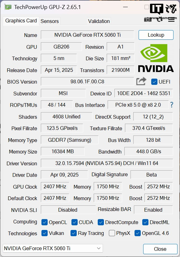 文章来源于互联网:IT之家-【IT之家评测室】微星 GeForce RTX 5060 Ti 16G INSPIRE 2X 显卡评测:短小精悍,百帧畅玩 2K 光追游戏