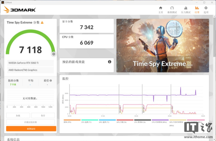 RTX 5060 Ti 的显卡分数为 7342 分;
