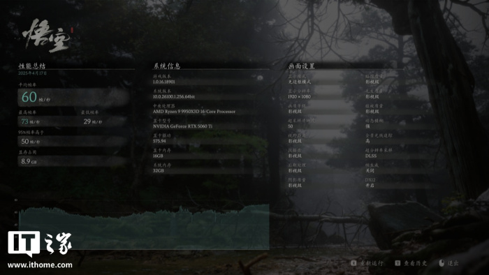 《黑神话:悟空》由于采用了全景光线追踪技术,并使用虚幻引擎 5 (UE5) 开发,即便官方做了细致的性能优化,但对于显卡的硬件性能压力依旧非常高。1080P 分辨率下如果不启用 DLSS 和帧生成功能,画质切换到最高档影视级,游戏平均帧数刚好踩在 60 帧的及格线,这个表现对喜欢流畅动作体验的玩家来说肯定是无法尽兴的。
