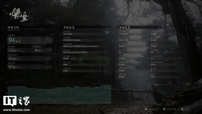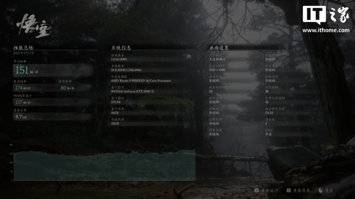 不过好消息是《黑神话:悟空》已于 4 月 15 日在 EPIC 和 WeGame 平台支持了 DLSS 多帧生成功能。为了测试微星 GeForce RTX 5060 Ti 16G INSPIRE 2X 显卡在《黑神话:悟空》中的性能潜力,直接使用 1080P 分辨率 + 影视级画质 + 50% 超采样 + 超高全景光线追踪,并将帧生成选项依次切换 2x、3x 和 4x,游戏平均帧数分别提升到了 94 帧、125 帧和 151 帧,这个表现非常令人惊喜,当然也会因此带来一定的游戏延迟提升,所以我建议大家开 2x 帧生成,画质调低一档到超高,这样既能获得超百帧的帧数又尽可能减少了游戏延迟。
