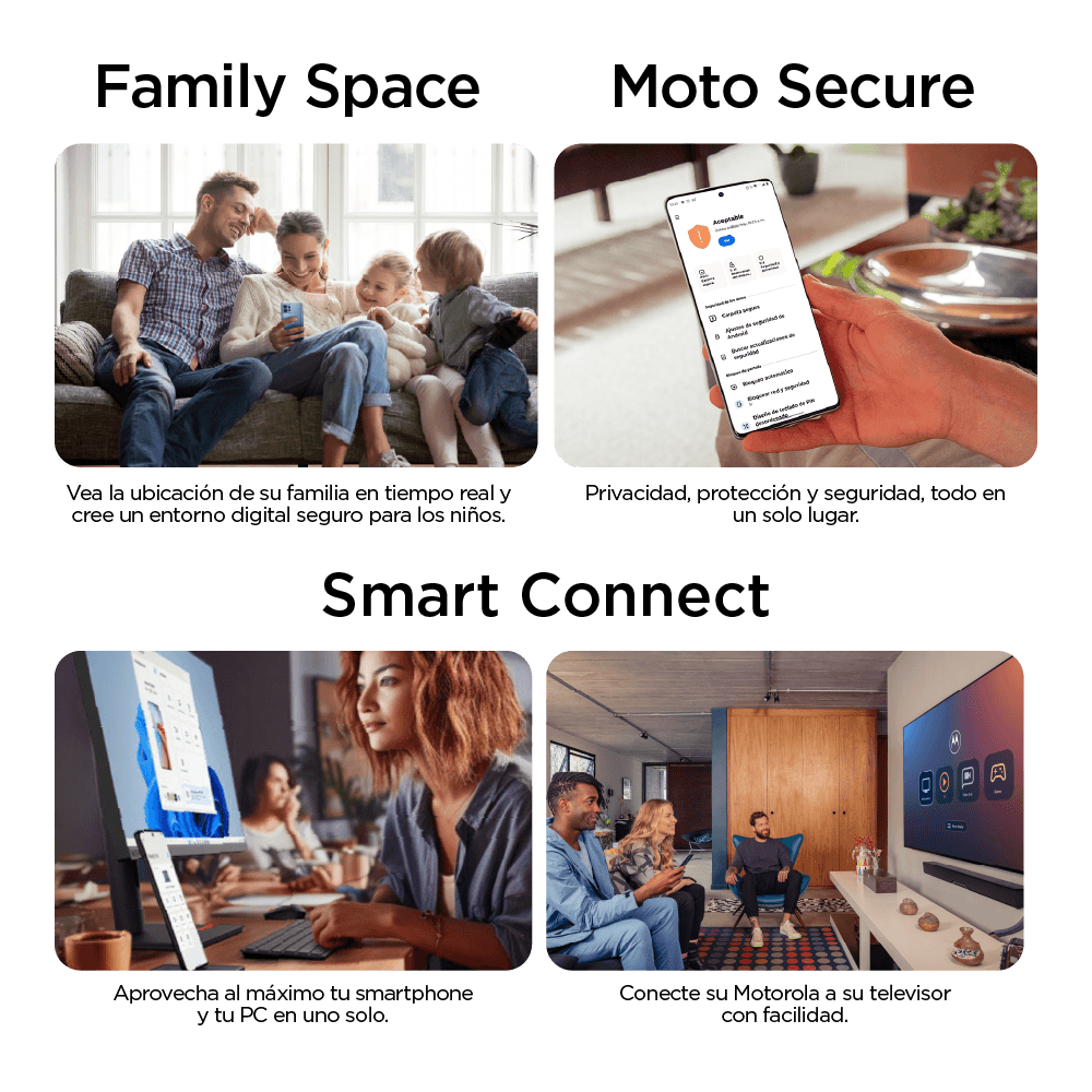 此外,设备还内置 Family Space 家长控制与位置追踪功能、Moto Secure 隐私与网络安全工具,以及支持与 Windows 设备互联的 Smart Connect 功能。