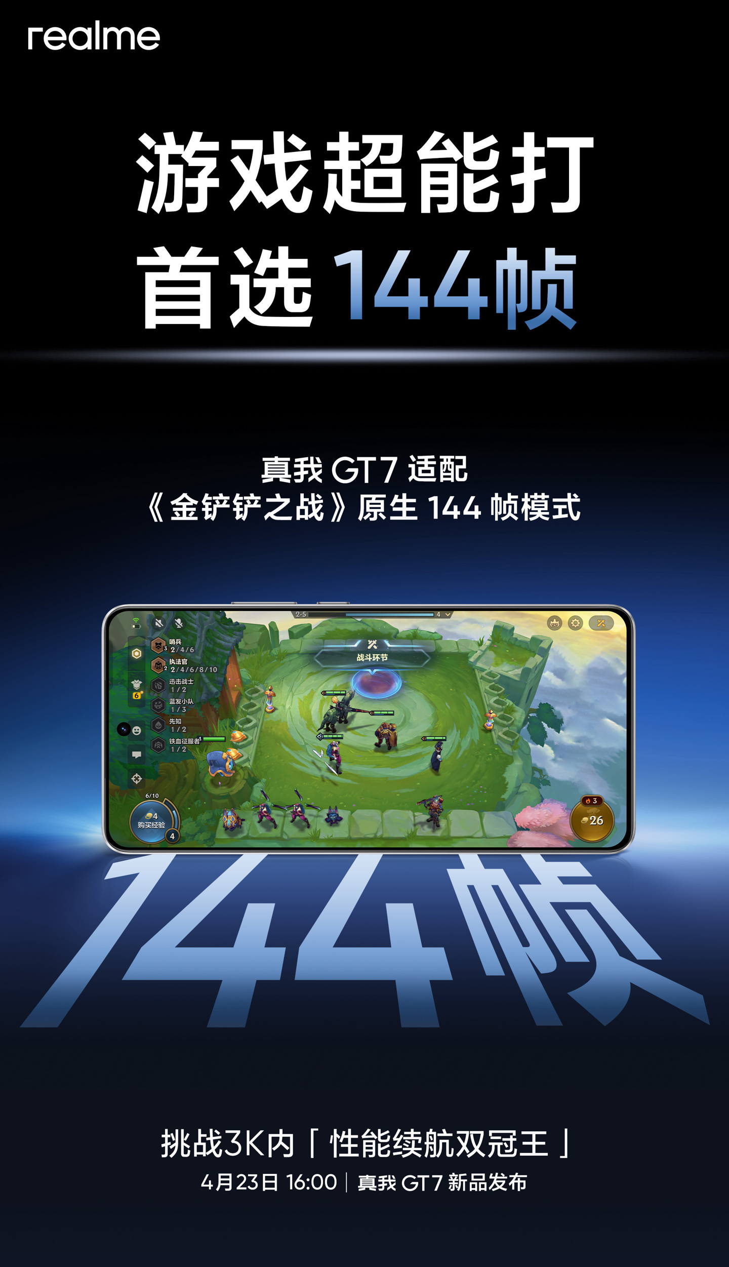 文章来源于互联网:IT之家-realme 真我 GT7 手机预热:适配《决胜巅峰》《金铲铲之战》等游戏原生 144 帧模式