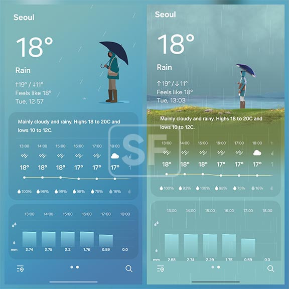例如寒冷天气下背景会呈现冰霜效果,角色也会表现出相应状态。夏季时,背景会出现烈日,角色身着休闲服饰并显露出汗水细节;雨季则有更真实的雨滴效果,角色设计也更加自然。这些改进让天气信息呈现更加生动,提升了用户的沉浸感。